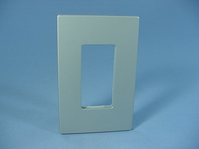 Cooper ASPIRE 9521SG silver granite 1-gang Decorator screwless wallplate. Aspire's Silver Granite is a two tone color scheme in which the device is dark gray and the surrounding wallplate is a complementing light gray to add a more sophisticated look to your walls than conventional fixtures. ASPIRE's award-winning architectural wiring devices add a touch of sensual elegance to the most sophisticated interior design. The clean, modern appearance of the ASPIRE product line represents the most innovative approach to designer wiring devices in decades. Sleek, smooth and seamless, screwless wallplates appear to float freely on the surface of the wall, framing every ASPIRE device beautifully. Rather than subduing its presence, an ASPIRE wiring device makes a statement as an integral element of decor. ASPIRE screwless wallplates are designed for easy and fast installation - simply screw the mounting plate onto the wiring device and press the wallplate into place. And, the clean, streamlined look of ASPIRE screwless wallplates can be changed in seconds if a new color is desired. Commercial Specification Grade, screwless/snap-on for a clean crisp look with no visible fasteners. Features include: