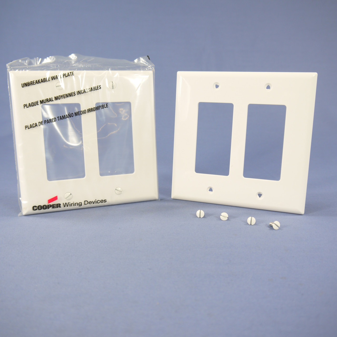 - 2 Cooper White 2-Gang Decorator UNBREAKABLE Mid-Size Wallplate GFI GFI Covers PJ262W