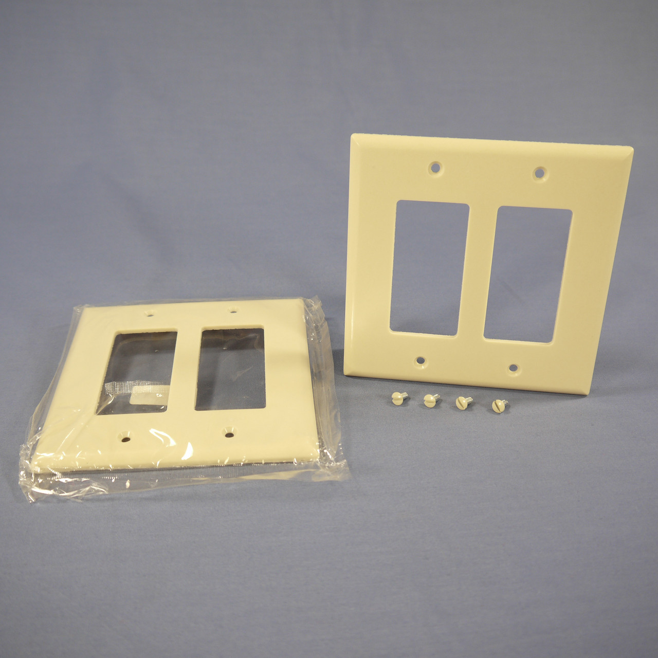 - 2 Eagle Ivory Mid-Size 2-Gang Decorator Thermoset Wallplate GFCI GFI Covers 2052V