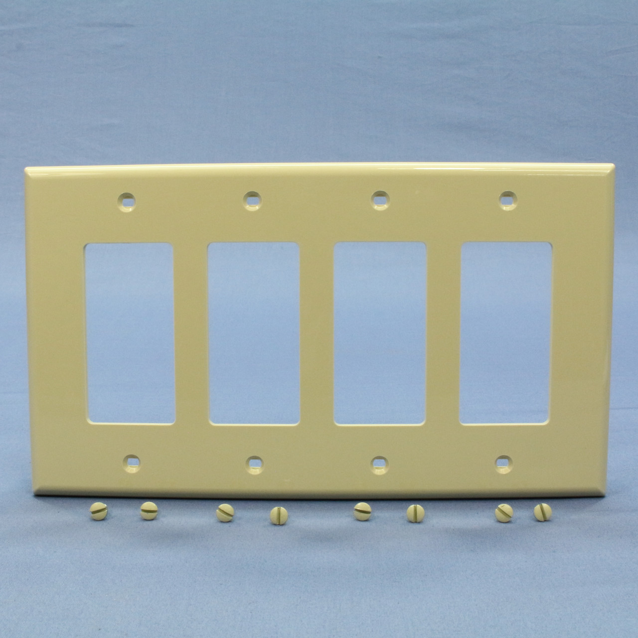 - Leviton Ivory 4-Gang Decora Unbreakable MIDWAY Large Wallplate GFI GFCI Cover PJ264-I