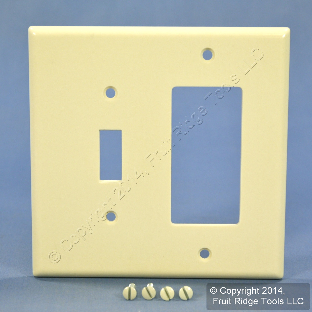 - Leviton LARGE Almond 2-Gang Decora Toggle Switch Cover GFCI GFI Wallplate 80605-A