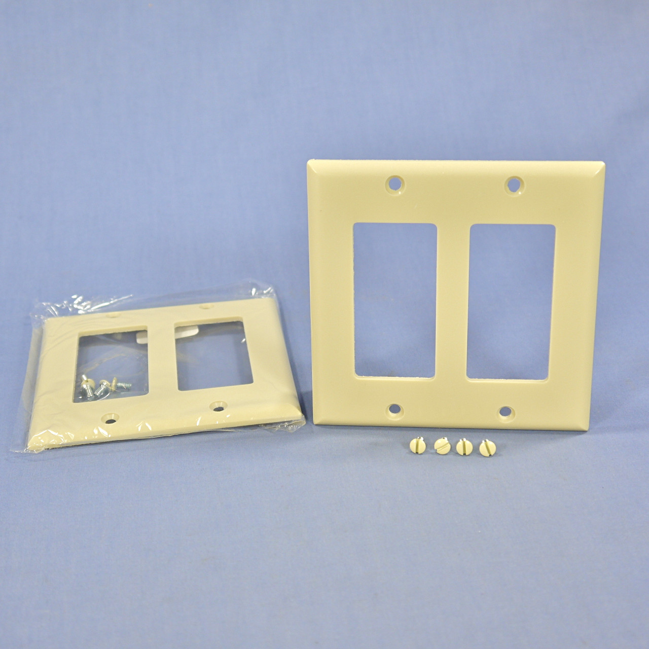 - 2 Cooper Ivory Decorator Standard 2-Gang Thermoset Wallplate GFCI GFI Covers 2152V