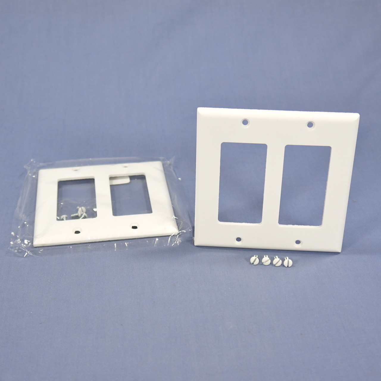 - 2 Cooper White Decorator Standard 2-Gang Thermoset Wallplate GFCI GFI Covers 2152W