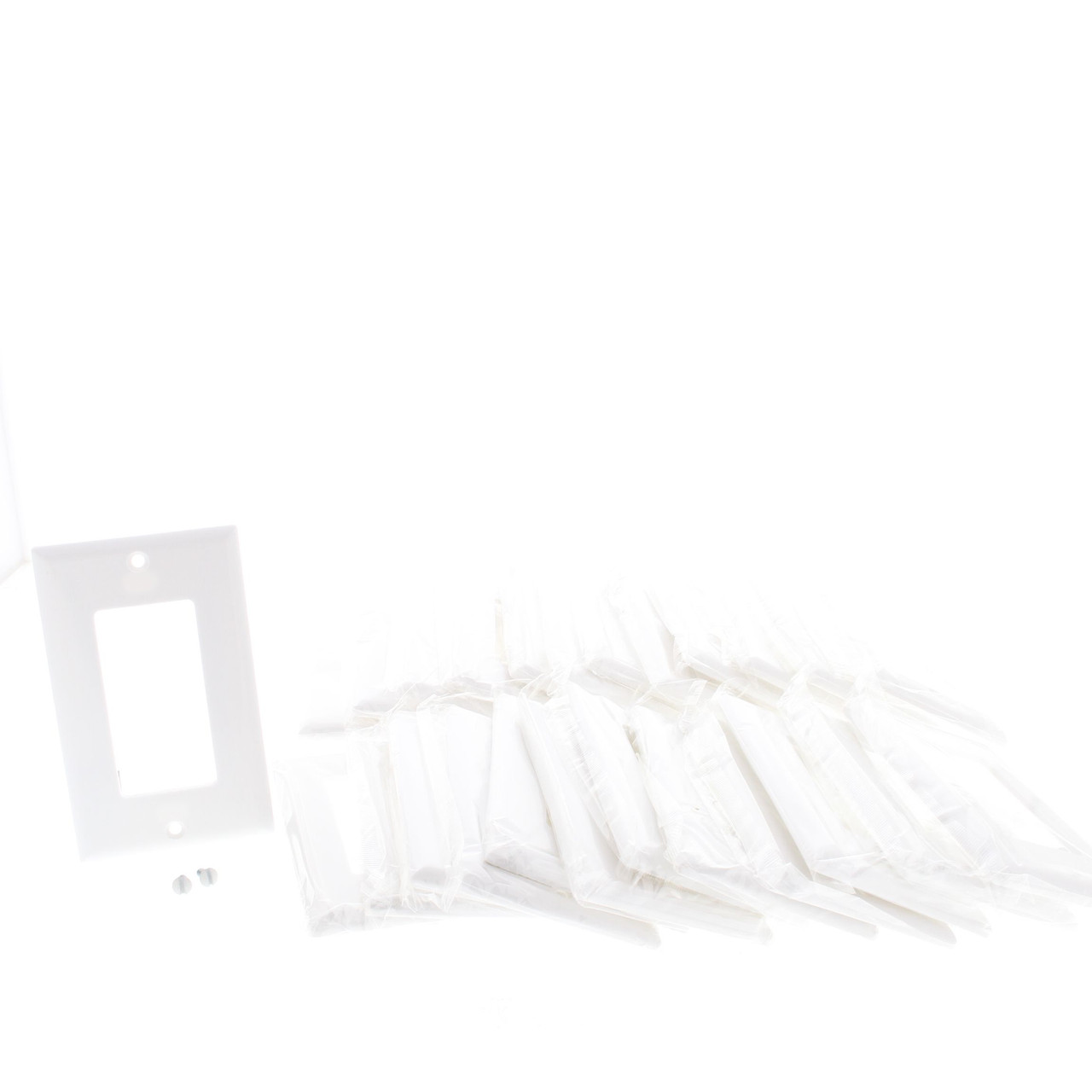 25 Cooper 2151W white 1-gang Decorator thermoset wallplates. Standard Grade, standard size wallplates (2.75"w x 4.50"h) with a rectangular opening that is compatible with Decorator and GFCI devices. Features include: