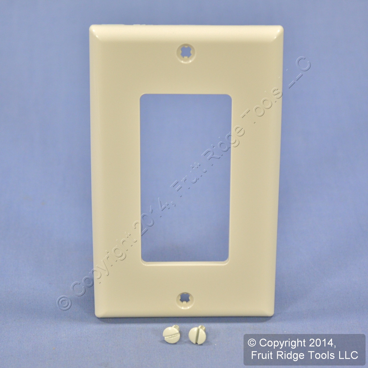 Leviton 80401-NT light almond Decora unbreakable wallplate. Commercial Specification Grade, standard size (2.75"w x 4.50"h) with a rectangular opening that is compatible with Decora and GFCI devices. Made of a tough unbreakable thermoplastic material - do not confuse it with regular residential grade wallplates which can chip or crack. Features include: