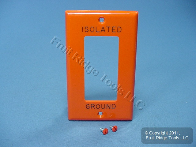 Leviton 80401-IG orange Decora wallplate permanently hot stamped with "ISOLATED GROUND". Good for applications where you have separate isolated ground outlets for your sensitive equipment. Commercial Grade, standard size wallplates (2.75"w x 4.50"h) with a rectangular opening that is compatible with Decora and GFCI devices. Made of a tough unbreakable thermoplastic - do not confuse it with regular plastic residential plates which can chip or crack. Features include: