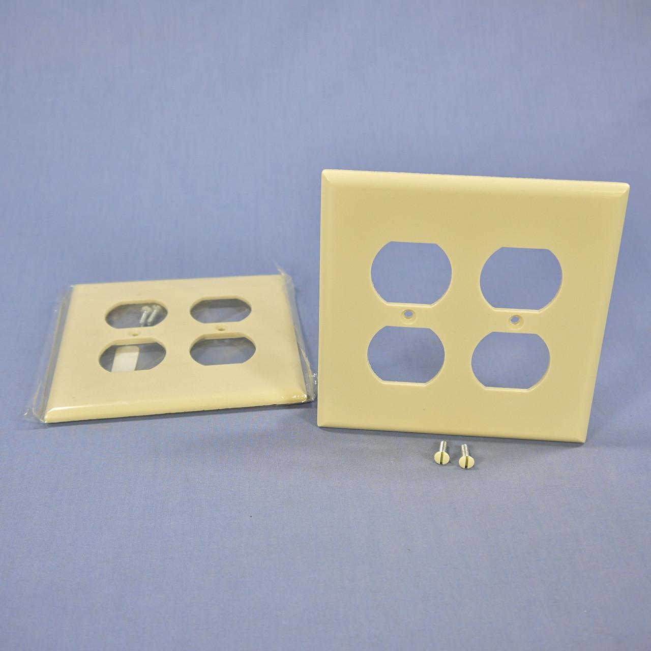 - 2 Cooper Mid-Size 2-Gang Ivory Receptacle Thermoset Wallplate Outlet Covers 2050V