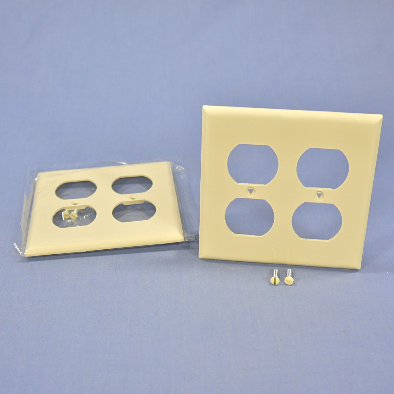 - 2 Cooper Ivory 2-Gang Receptacle Wallplate Unbreakable Duplex Outlet Covers 5150V