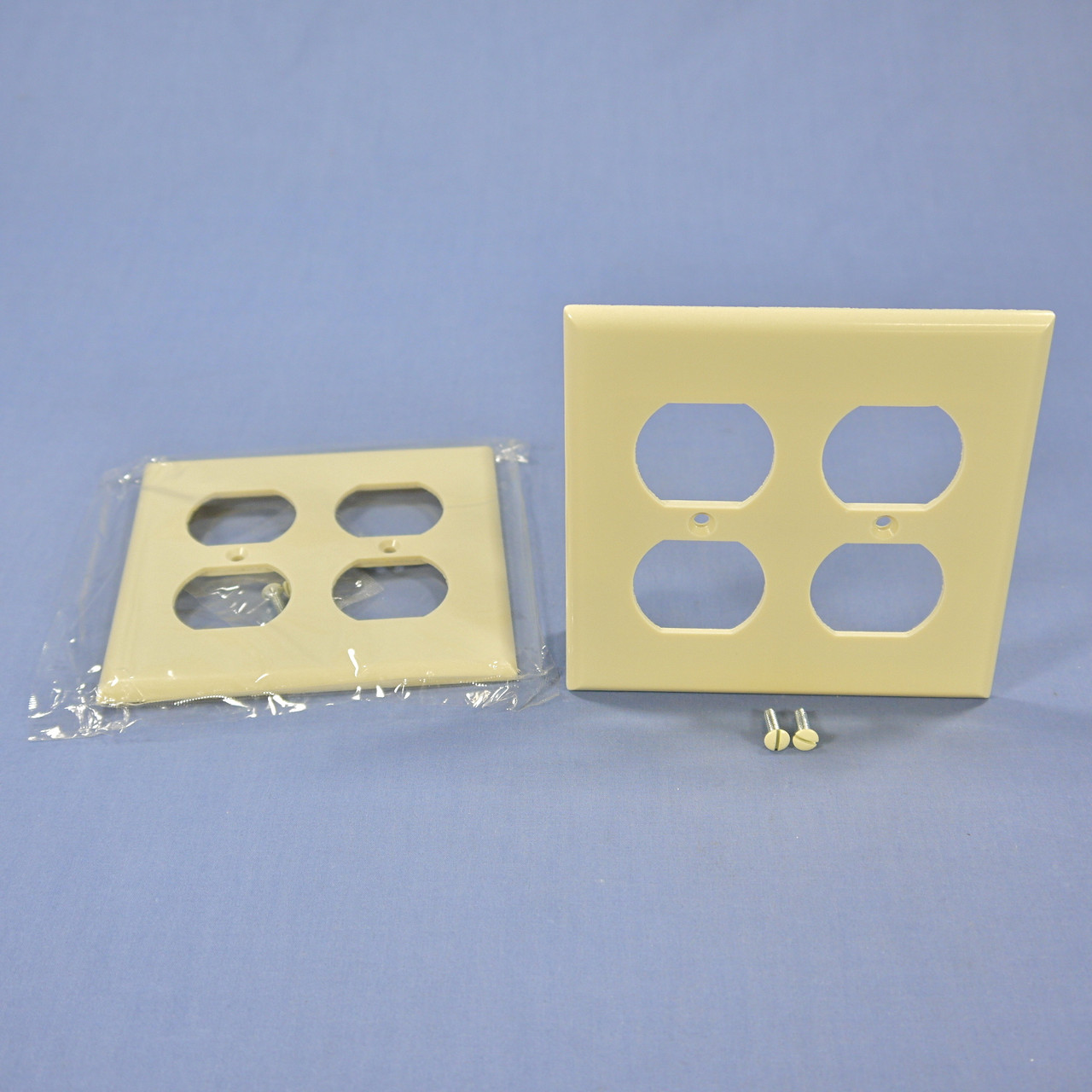 - 2 Cooper Ivory Standard 2-Gang Receptacle Thermoset Wallplate Outlet Covers 2150V