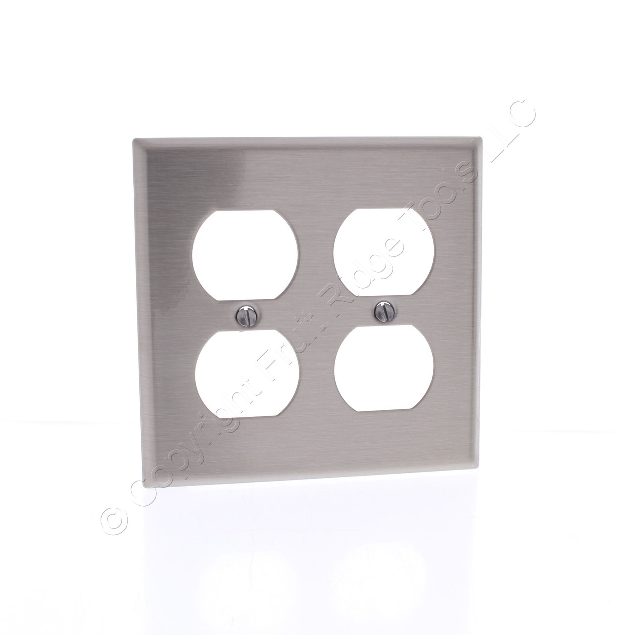 - Cooper ANTIMICROBIAL Stainless Steel 2-Gang Receptacle Wallplate Duplex Outlet Cover 93102AM