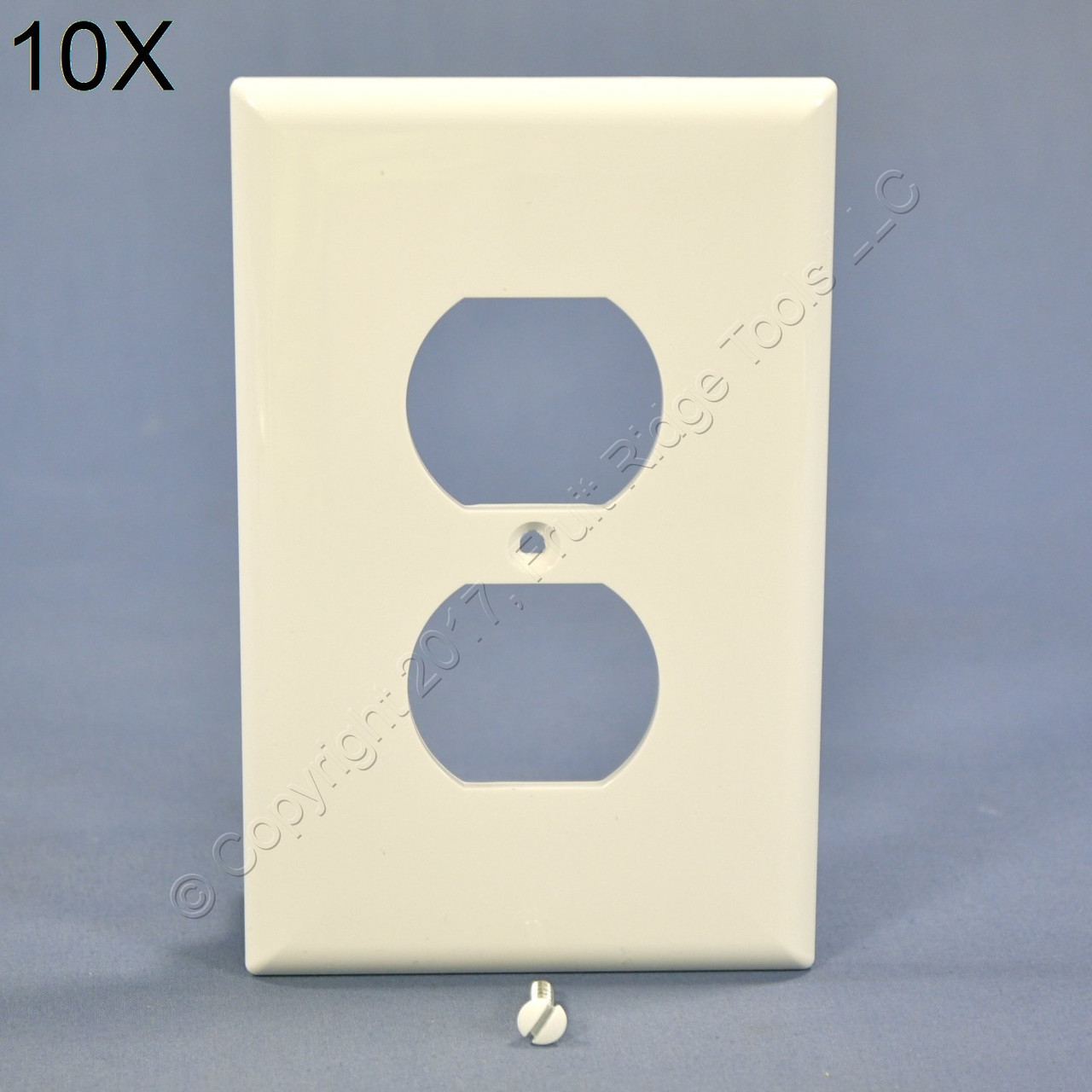 10 Cooper PJ8W white unbreakable duplex outlet cover wallplates. Commercial Specification Grade, Mid-Size, made of a high-performance unbreakable polycarbonate for high abuse environments; do not confuse it with regular residential grade wallplates which can chip and crack. Mid-Size measures 3.125"w X 4.875"h, 3/8" larger in both dimensions than standard size plates and is intended for use with larger volume outlet boxes or to hide irregularities in the surrounding wall. Each is individually packaged; packaging may differ from photos. Features include: