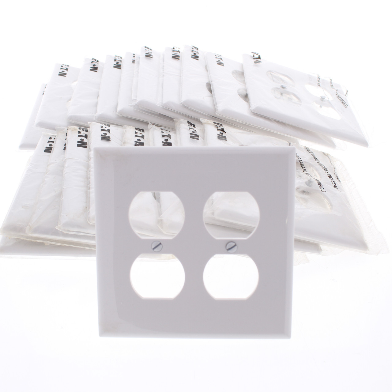 - 20 Eaton White Mid-Size 2G UNBREAKABLE Receptacle Wallplate Outlet Covers PJ82W