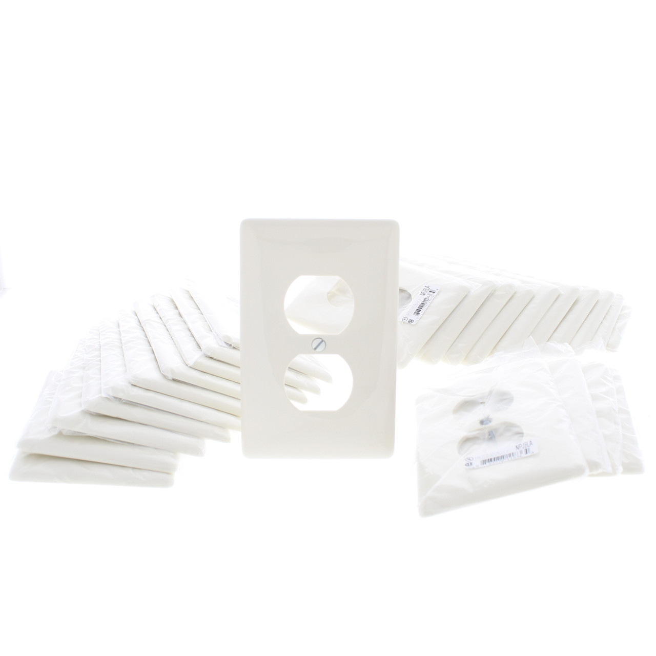 25 Hubbell Lt Almond UNBREAKABLE Duplex Receptacle Wallplate Mid-Size Outlet Covers NPJ8LA