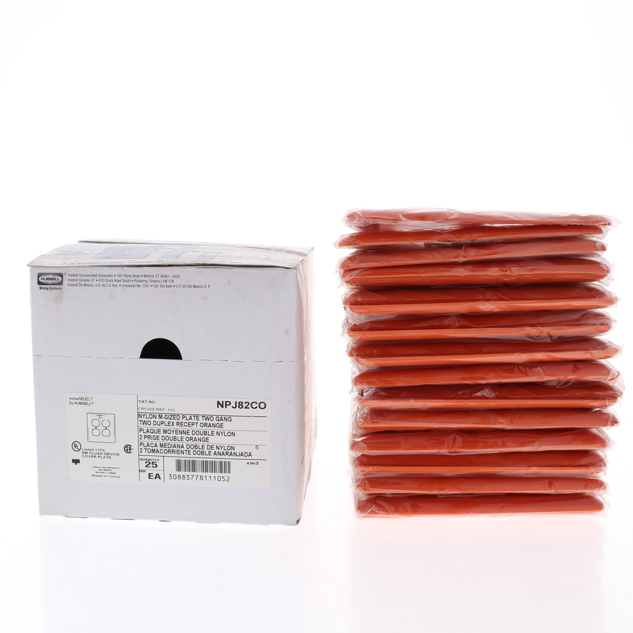 - 25 Hubbell Orange UNBREAKABLE 2-Gang "Computer Only" Duplex Receptacle Outlet Mid-Size Wallplate Covers NPJ82CO