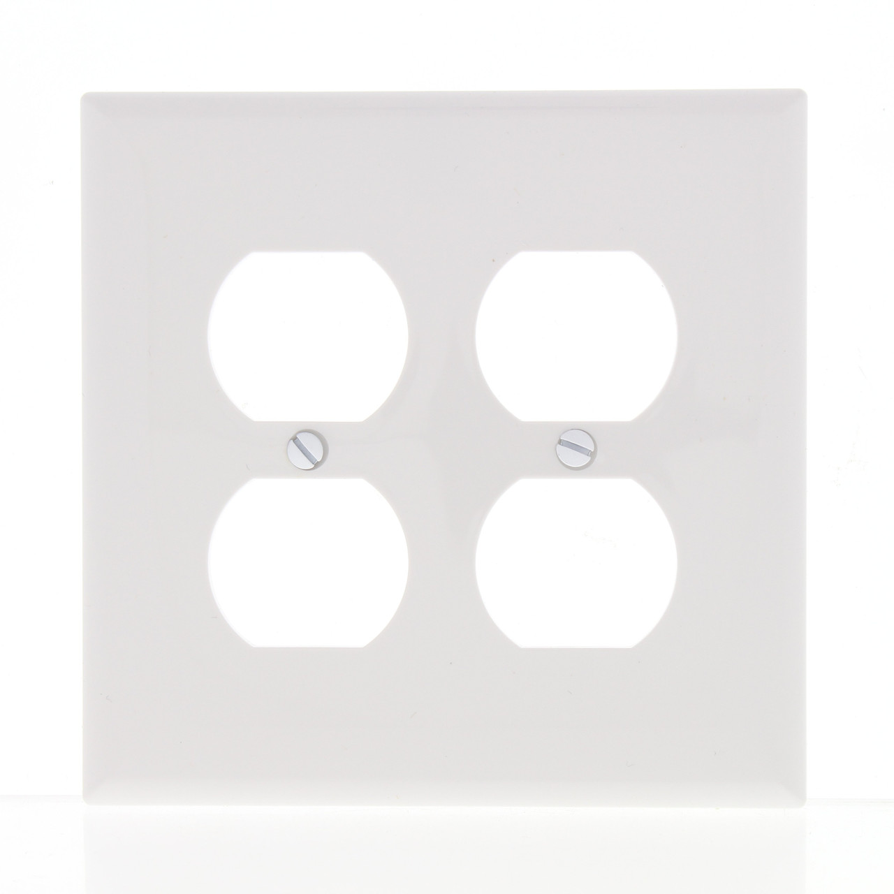 - Eaton White Mid-Size 2-Gang UNBREAKABLE Receptacle Wallplate Outlet Cover PJ82W