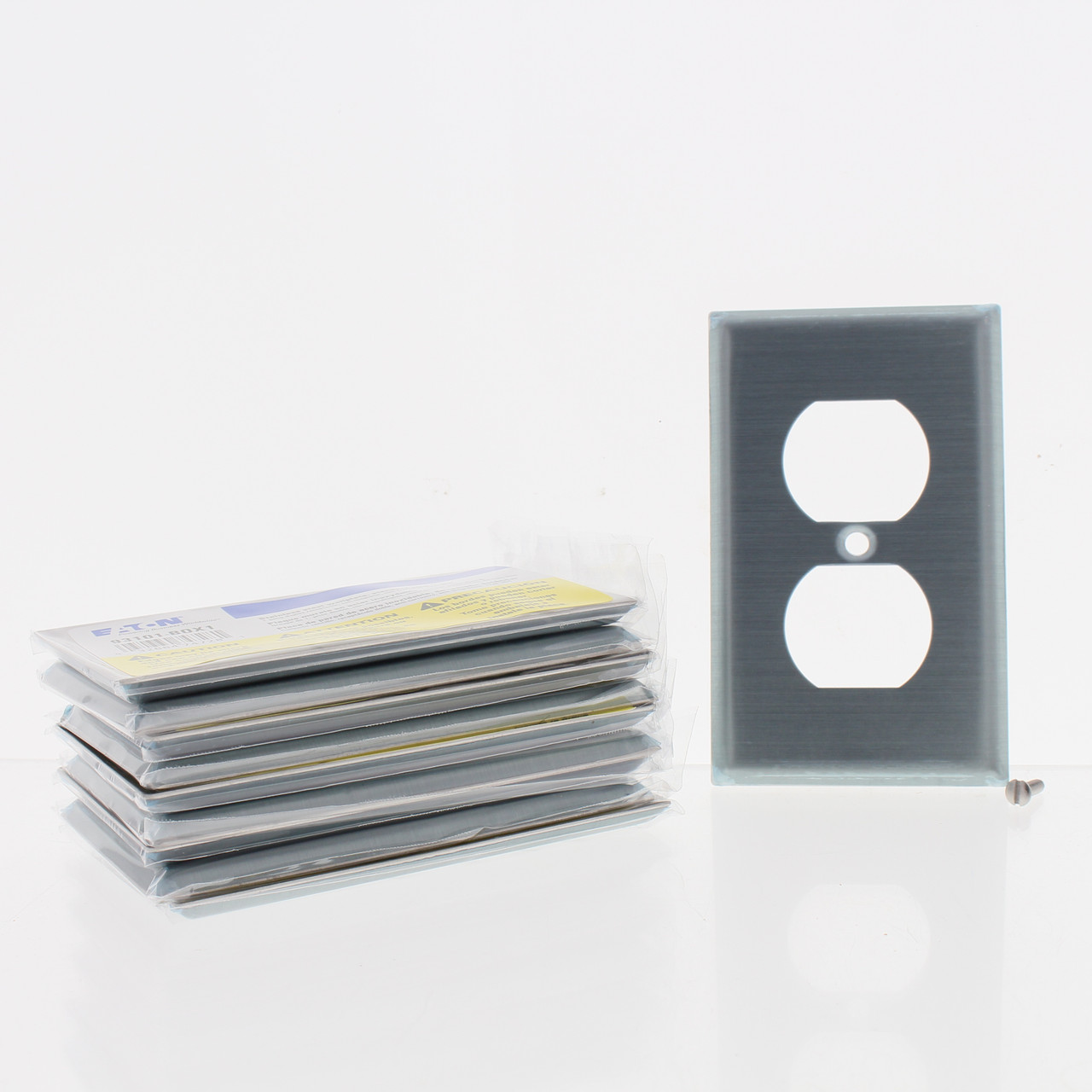 - 10 Eaton Stainless Steel 1-Gang Receptacle Duplex Outlet Cover Wallplates 93101