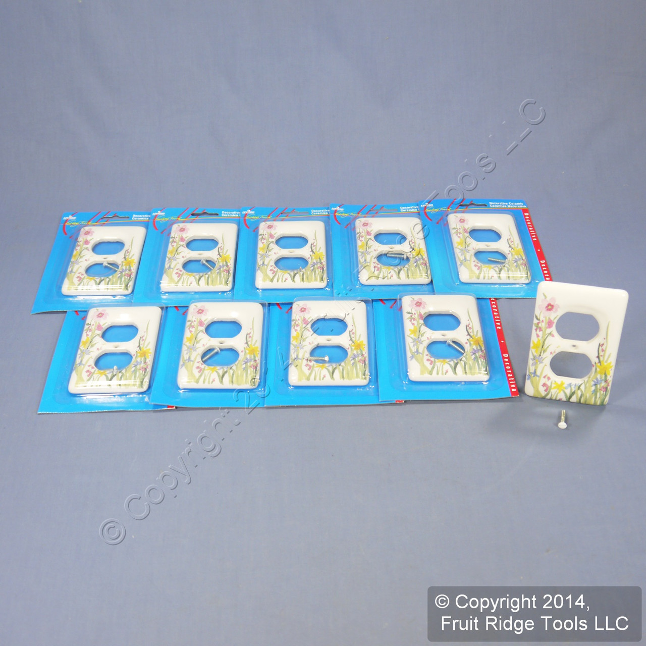 - 10 Leviton Wildflower Pattern Ceramic Receptacle Wallplate Duplex Outlet Covers 89503-WFL