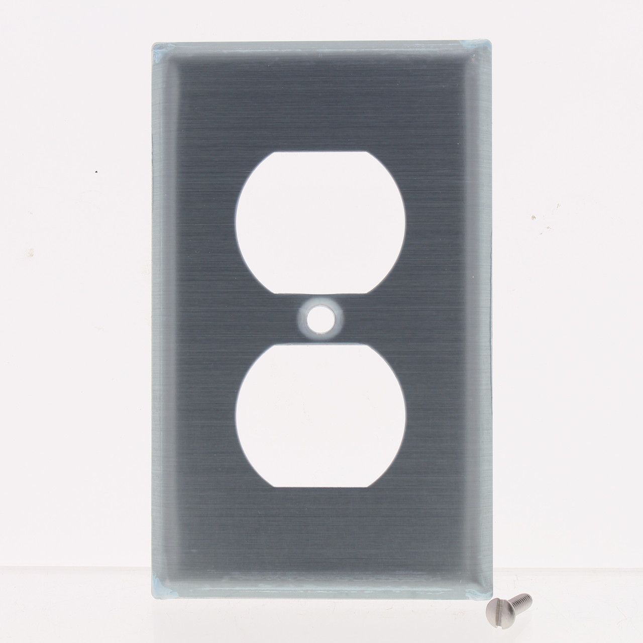 - Eaton Stainless Steel Receptacle Duplex Outlet Cover Wallplate Wall Plate 93101