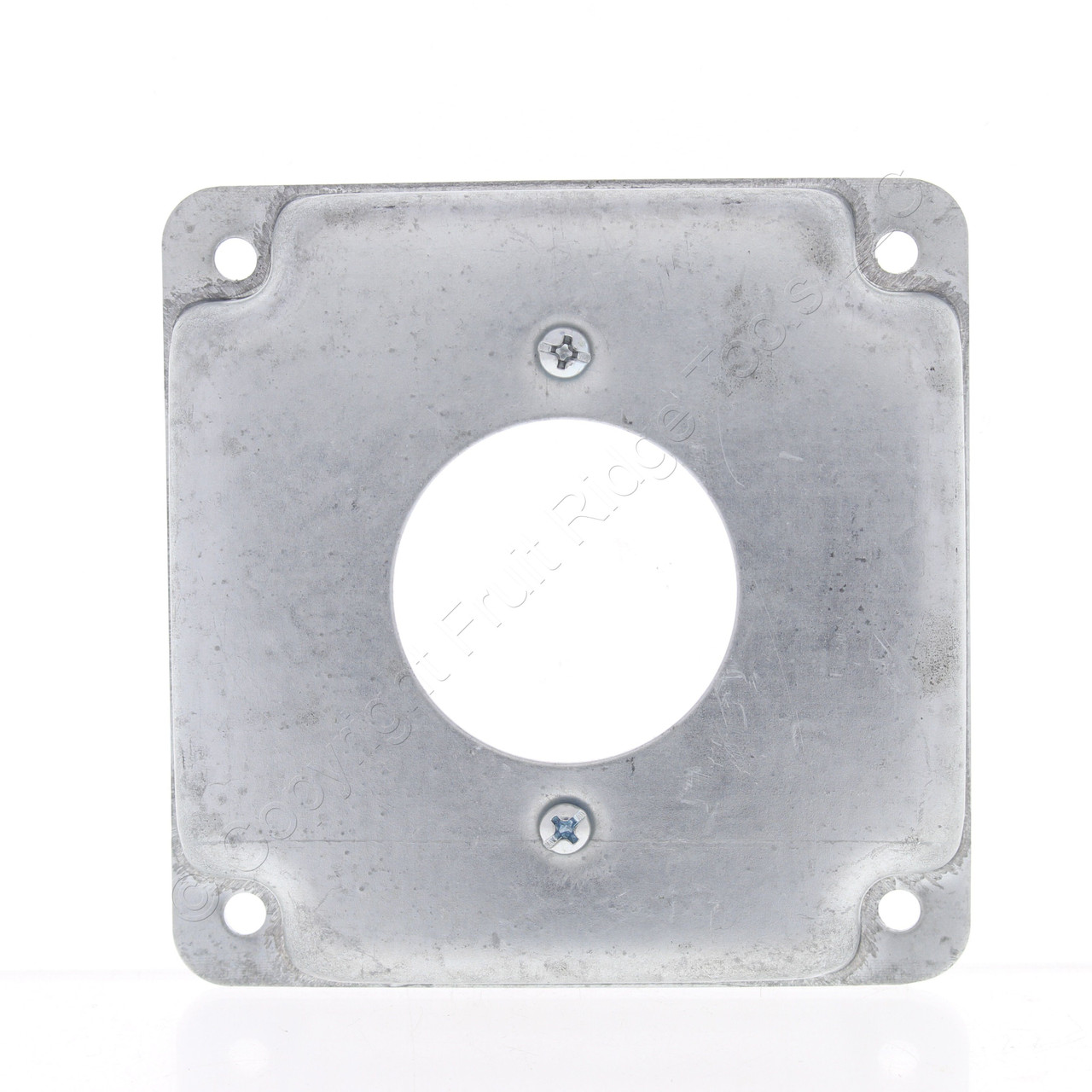 Hubbell S811CA steel cover for a 4" square electrical box with a 1.71" diameter opening (made by Raco for distribution by Hubbell, Raco part number is 811C). 1.71" opening is typically used for a 20A or 30A locking receptacle - please be sure to check the size of the opening that you need before ordering. Bulk packed loose with no individual packagaging or instructions.