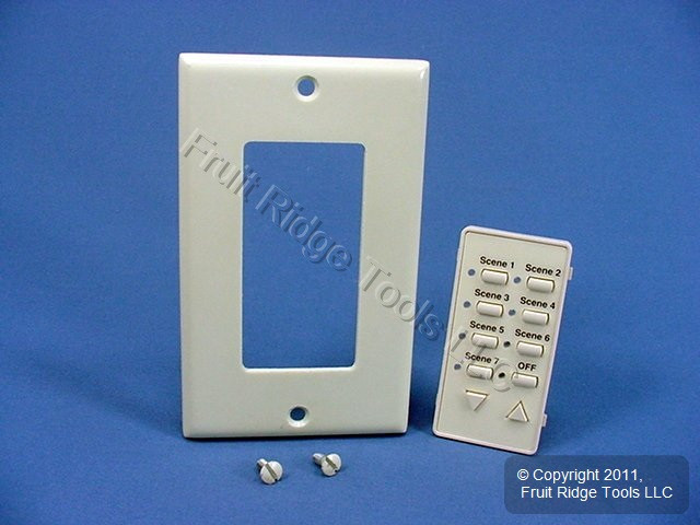 Leviton DCKS7-A almond Monet Scene Controller color conversion kit with matching Decora wallplate. Used to change the color scheme of Monet Scene Controllers (7 scenes) during remodel or as spares so that you can always have the right color on hand. Please note that we include the wallplate as well; this is normally sold separately by others. Fits Leviton MN00C-1LW, MN00C-7LW, and HCCS7-1TW scene dimming controllers.