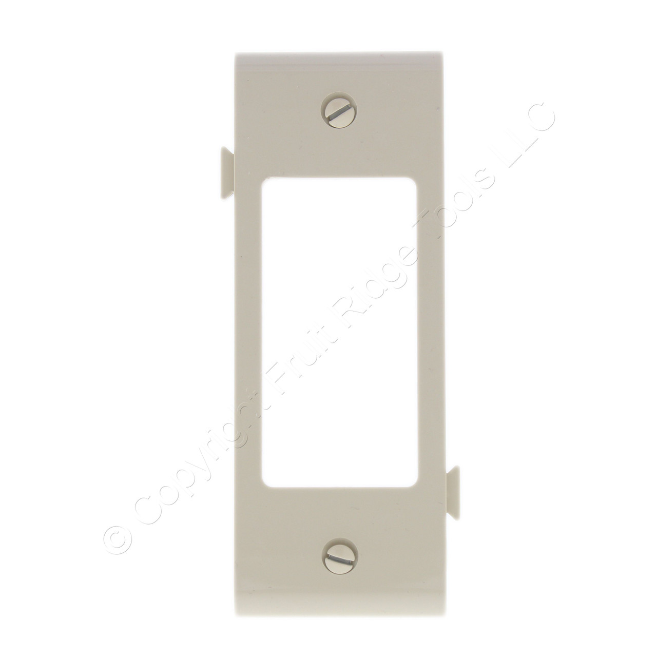 Cooper #STC26V ivory center sectional decorator cover wallplate. Unique Screw Catch feature holds mounting screw captive for easy installation. Thermoplastic construction for durability and flexibility. Mid-Size design to fit over most existing wall openings (4.875" high). Screws are already attached for easy mounting. Easy to snap together and lock to create custom multigang wallplates.
