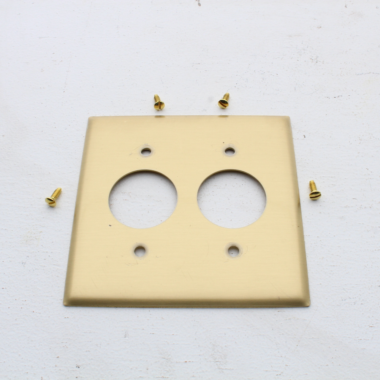 - Hubbell 2-Gang Solid Brass Wallplate 1.40" Outlet Opening Receptacle Cover SB72
