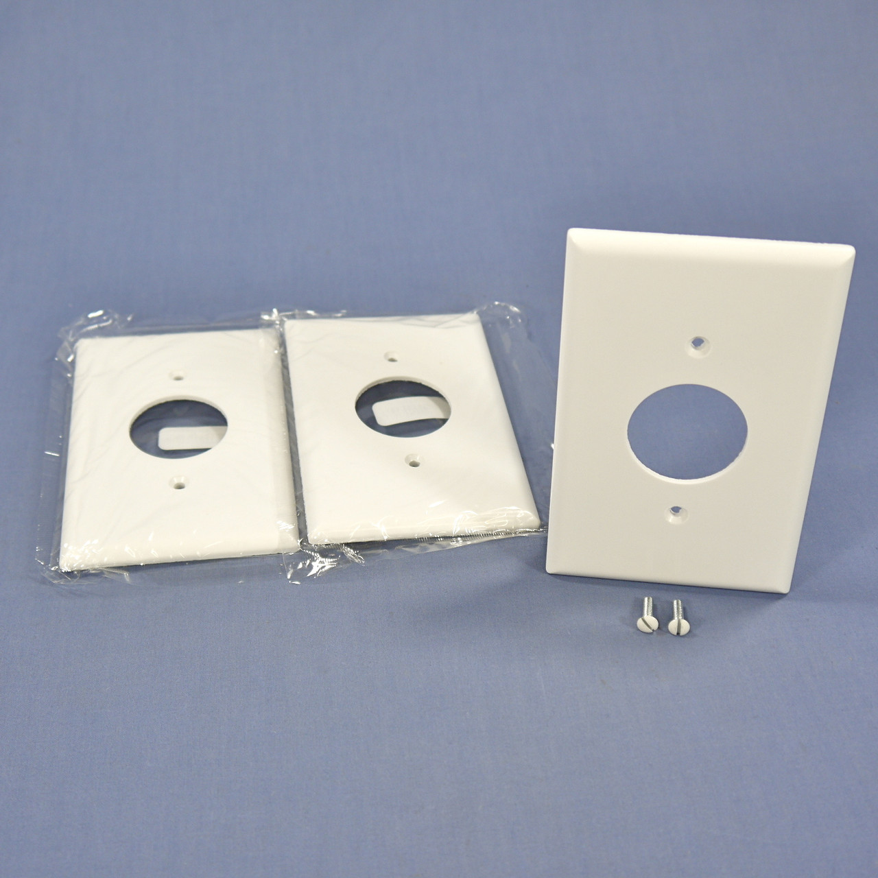 3 Cooper Mid-Size White 1.406" Receptacle Thermoset Wallplate Single Outlet Covers 2031W