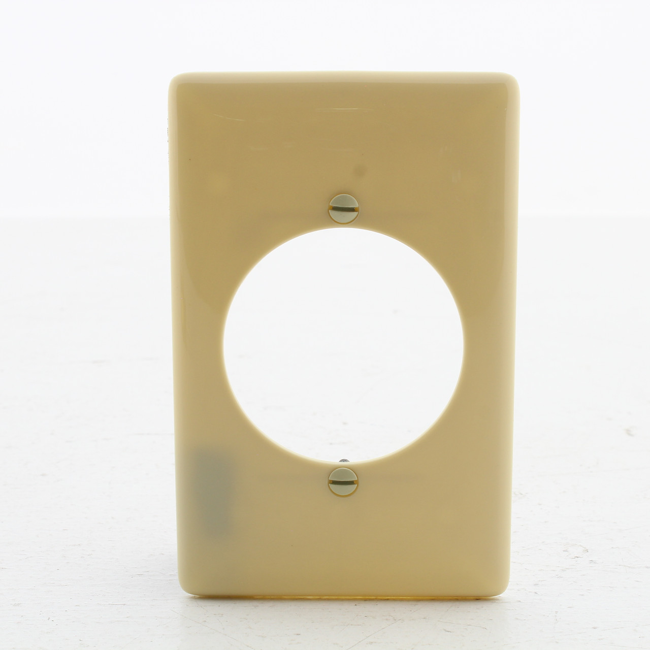 - Hubbell Ivory UNBREAKABLE 2.15" Diameter Receptacle Wallplate Mid-Size Single Outlet Cover NPJ724I