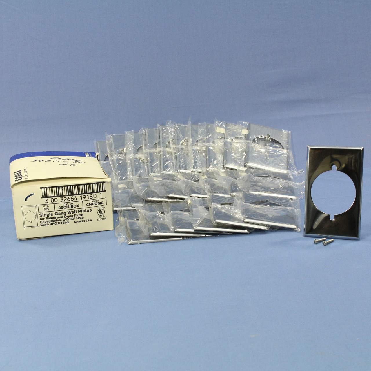 - 25 Eagle Chrome 1-Gang 2.156" Power Receptacle Dryer Range Welder Wallplates 39CH