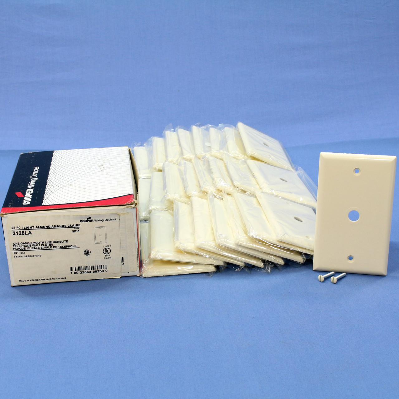 - 25 Cooper Light Almond Telephone Cable Thermoset Wallplate Covers .375" Hole 2128LA