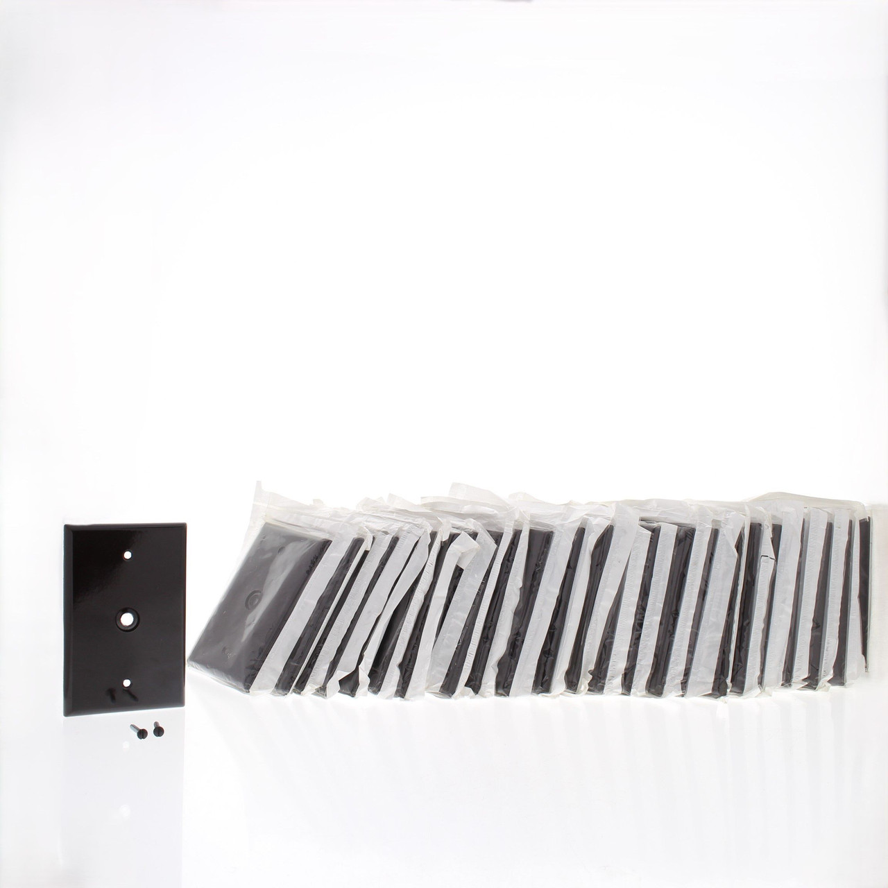 25 Leviton 80513 Brown box-mount wallplates with a .312" diameter hole for cable, radio, or telephone use. Residential grade, Midway size; each measures 3.125"w x 4.875"h, 3/8" higher and wider than standard size covers. Intended for use with larger volume wallboxes or to hide irregularities in the surrounding wall. Features include:
