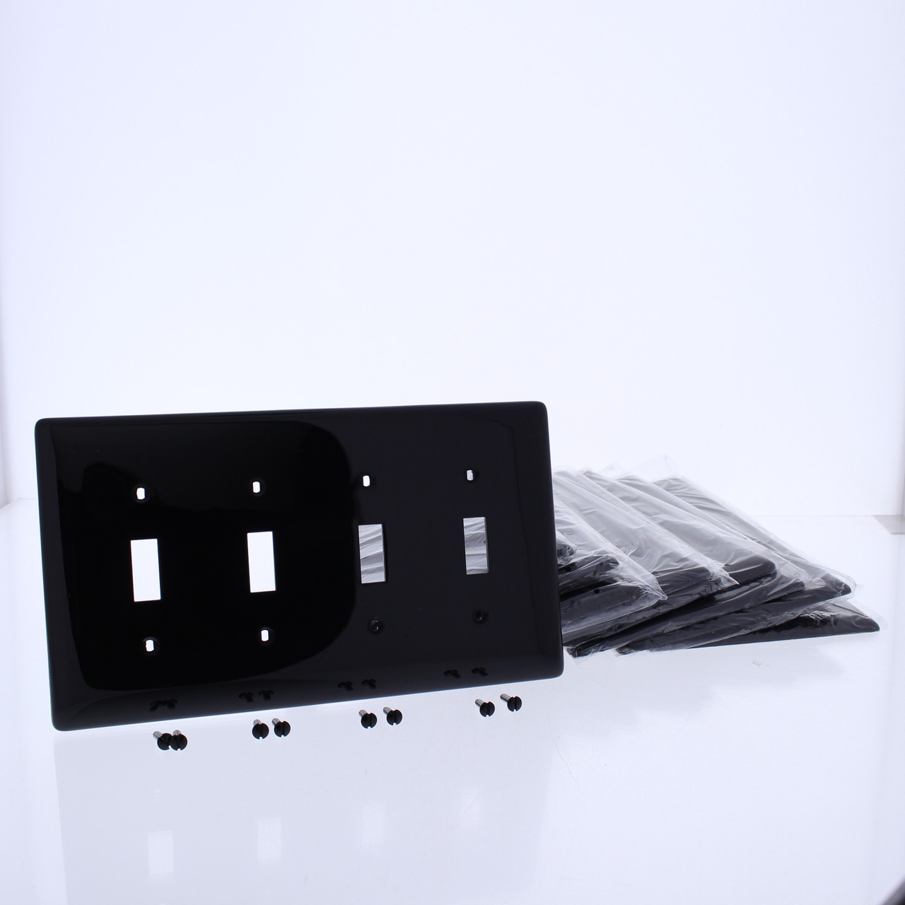 10 Hubbell Black 4-Gang UNBREAKABLE Mid-Size Toggle Switch Cover Wallplate Switchplates NPJ4BK