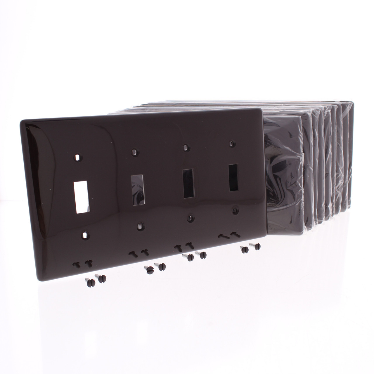 10 Hubbell Brown 4-Gang UNBREAKABLE Mid-Size Toggle Switch Cover Wallplates Switchplate NPJ4