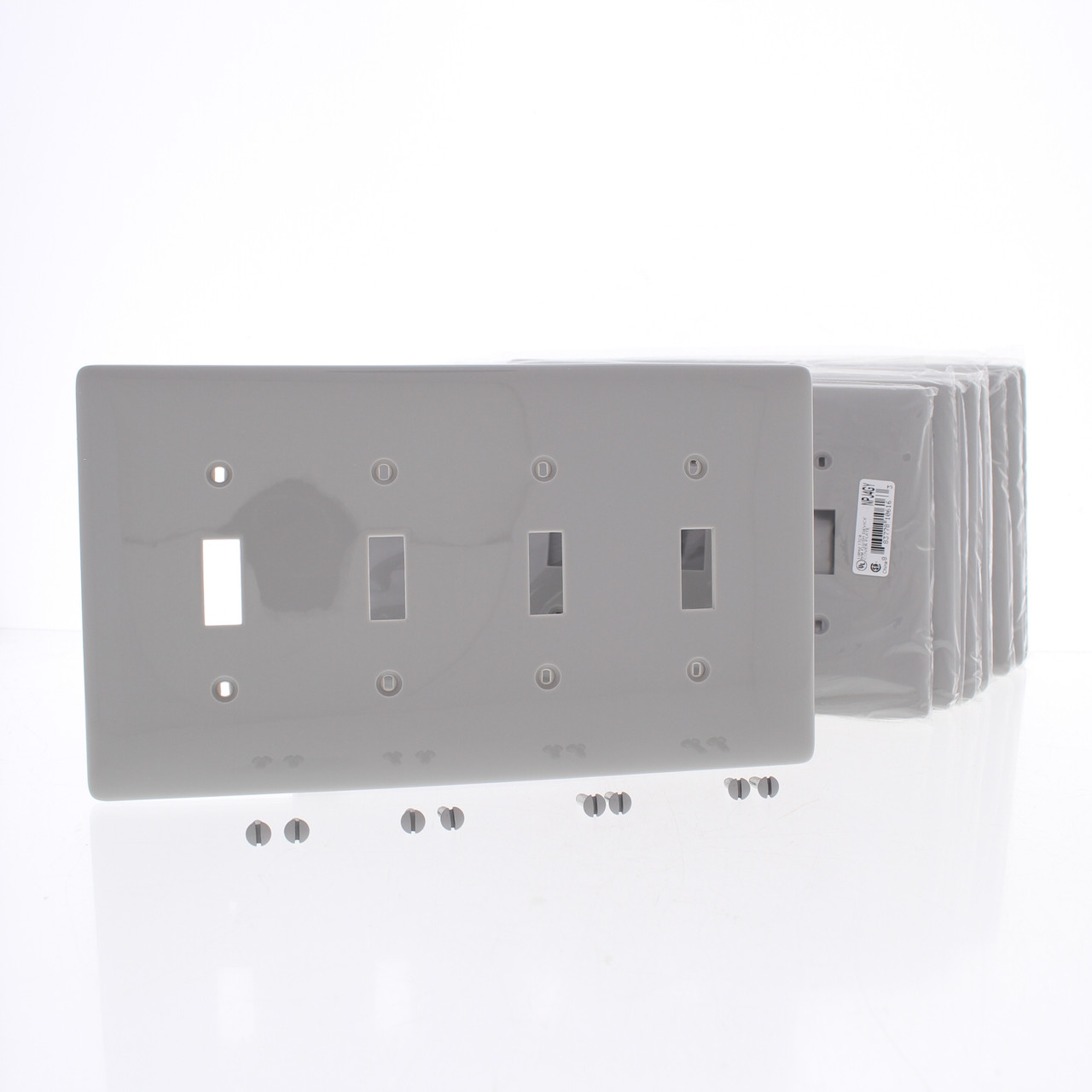 - 10 Hubbell Gray 4-Gang UNBREAKABLE Mid-Size Toggle Switch Cover Wallplate Switchplates NPJ4GY