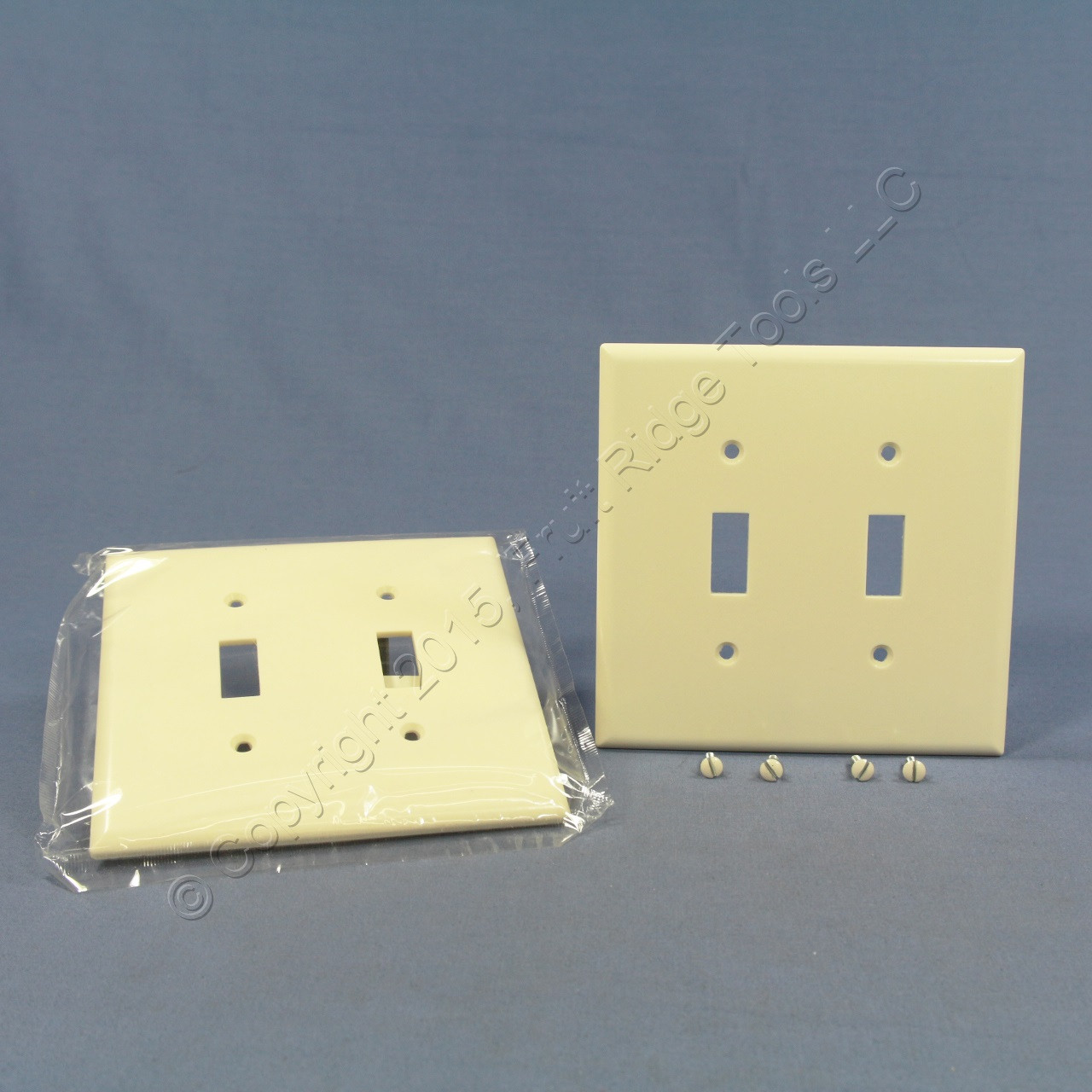 - 2 Cooper Light Almond Mid-Size 2-Gang Switch Cover Thermoset Wall Plate Switchplates 2039LA