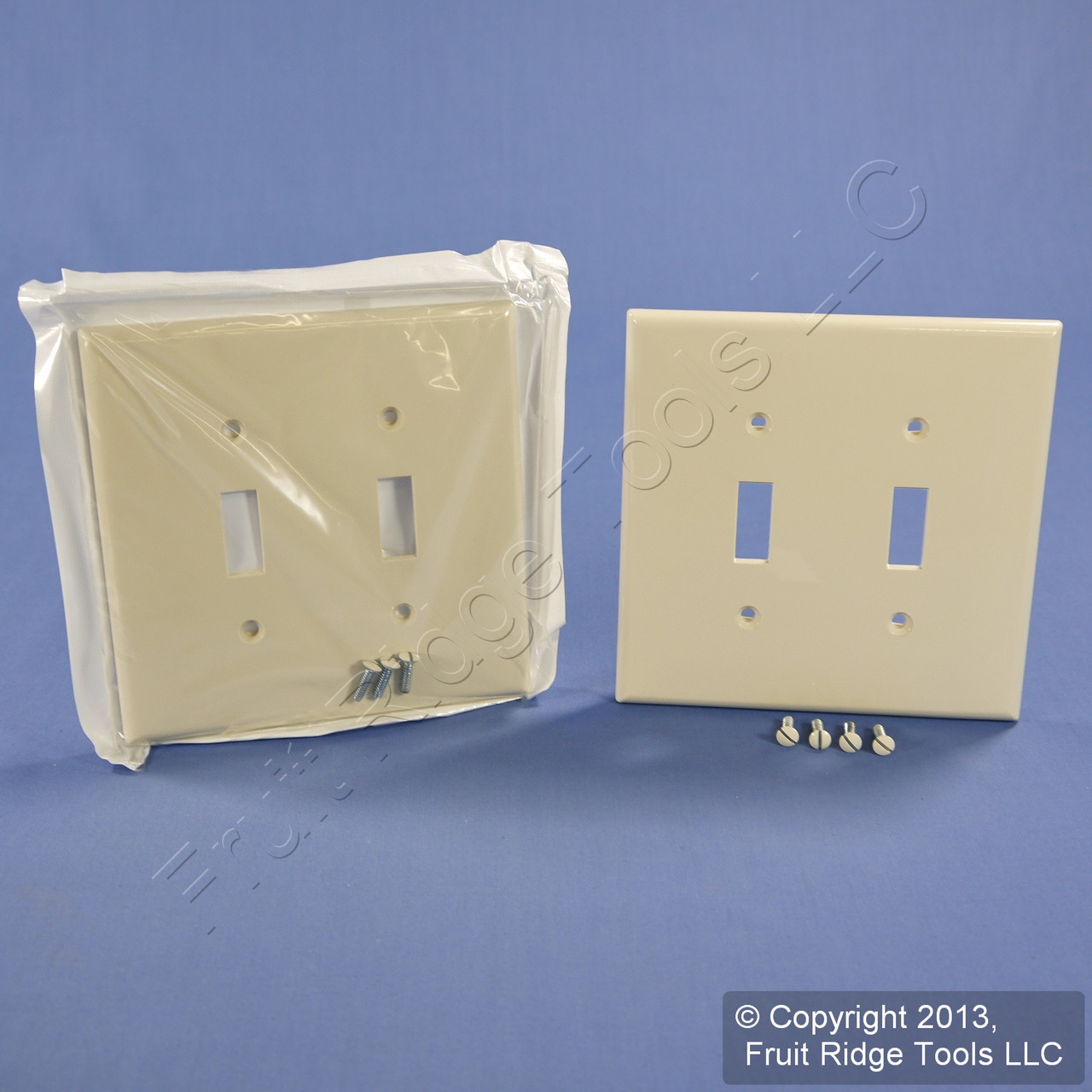 - 2 Leviton Light Almond 2-Gang Midway UNBREAKABLE Toggle Switch Cover Wallplates PJ2-T