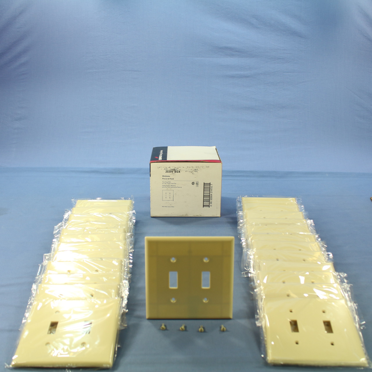 25 Cooper Ivory Mid-Size 2-Gang Switch Cover Thermoset Wall Plate Switchplates 2039V
