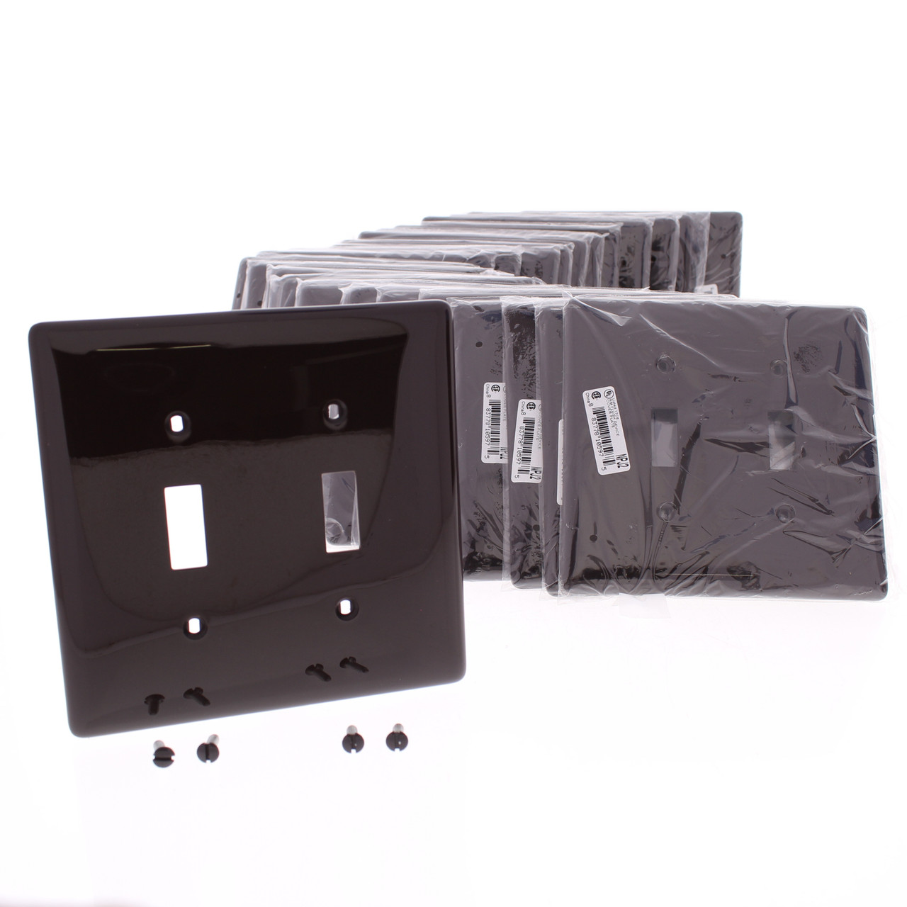 - 25 Hubbell Brown 2-Gang UNBREAKABLE Mid-Size Toggle Switch Plate Cover Wallplates NPJ2