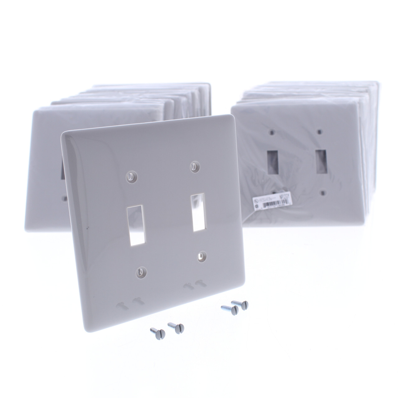 - 25 Hubbell Gray 2-Gang UNBREAKABLE Mid-Size Toggle Switch Plate Cover Wallplates NPJ2GY