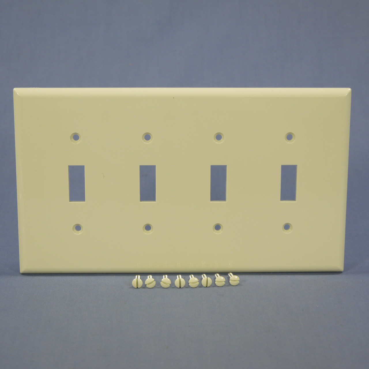 - Cooper Almond 4-Gang Mid-Size UNBREAKABLE Nylon Toggle Switch Wallplate Cover PJ4A