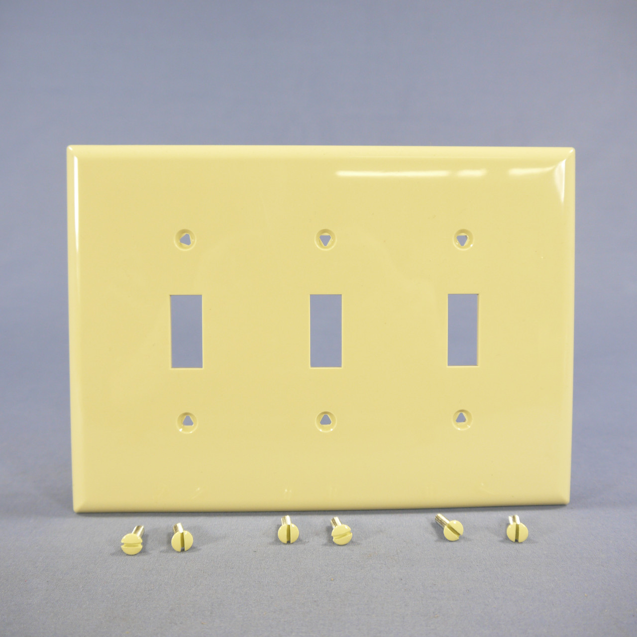 - Cooper Ivory 3-Gang Mid-Size UNBREAKABLE Nylon Toggle Switch Cover Wallplate PJ3V