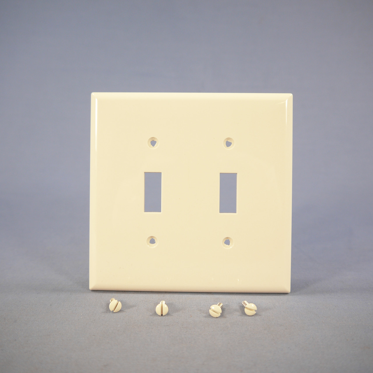 - Cooper Light Almond 2-Gang Mid-Size UNBREAKABLE Toggle Switch Cover Wallplate PJ2LA
