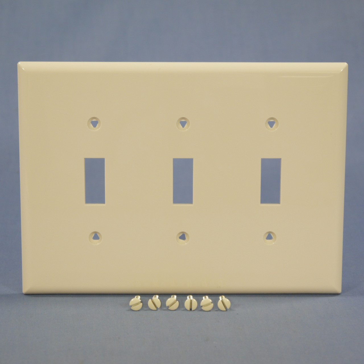 - Cooper Light Almond 3-Gang Mid-Size UNBREAKABLE Nylon Toggle Switch Cover Wallplate PJ3LA
