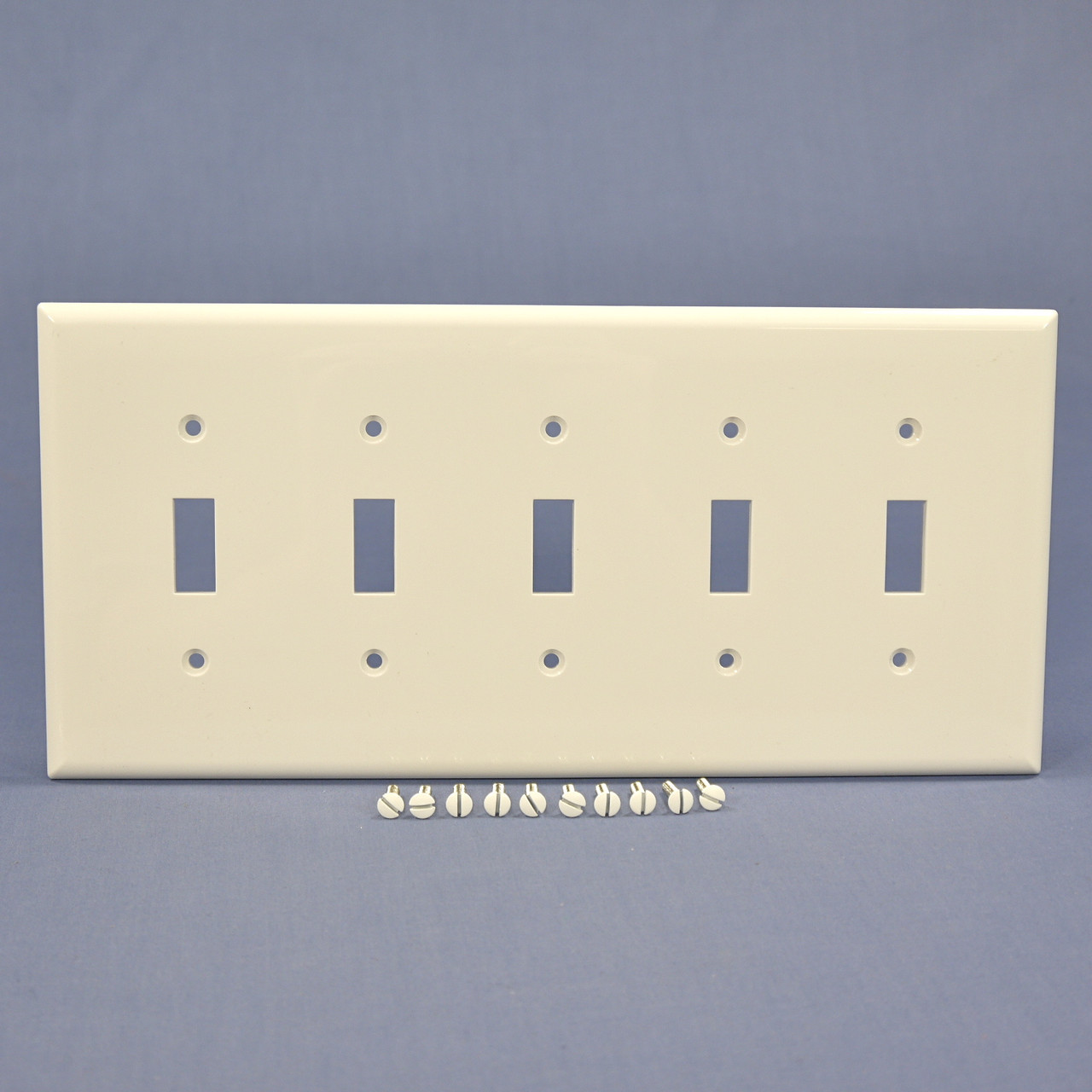 - Cooper White 5-Gang Mid-Size UNBREAKABLE Nylon Toggle Switch Wallplate Cover PJ5W