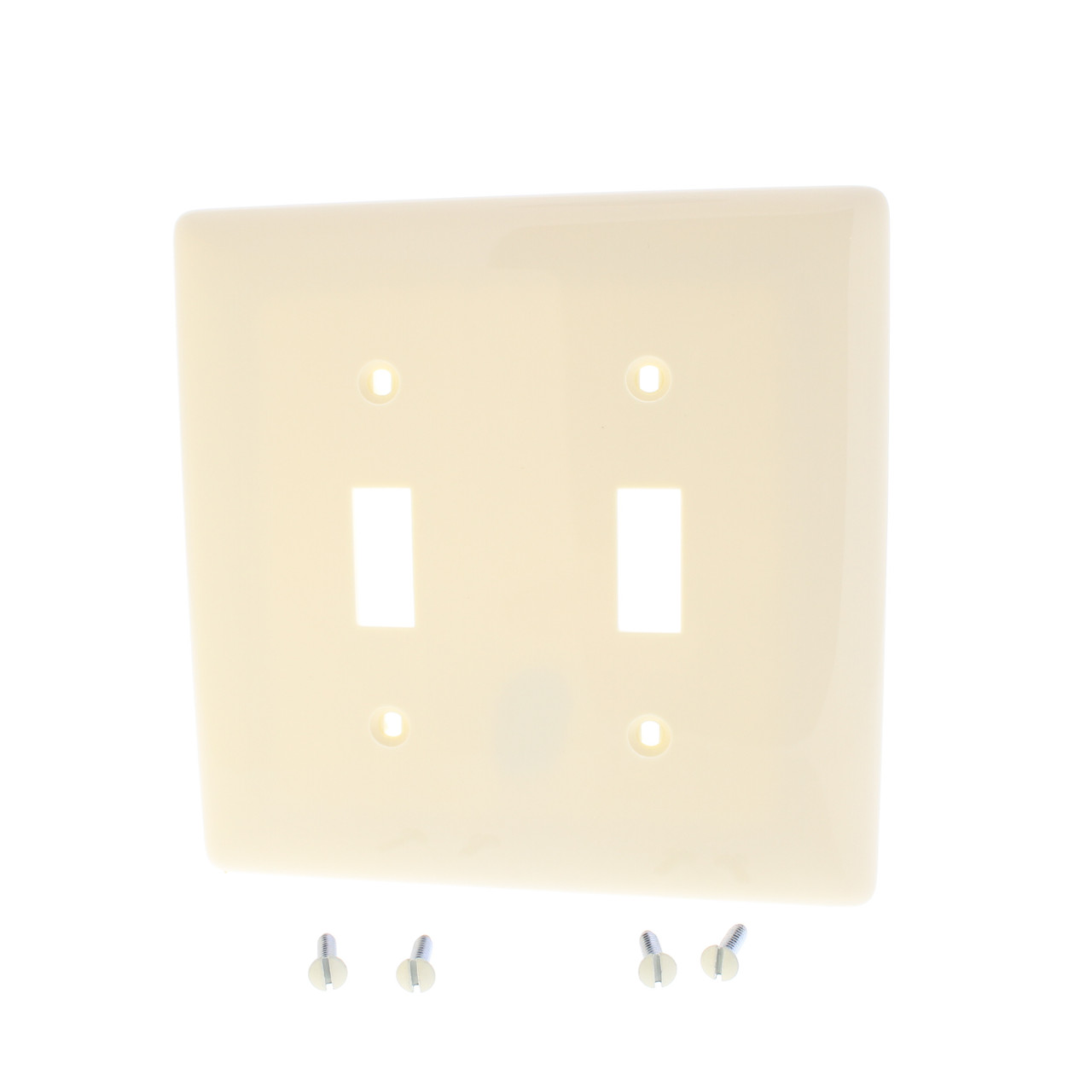 - Hubbell Almond 2-Gang UNBREAKABLE Mid-Size Toggle Switch Plate Cover Wallplate NPJ2AL