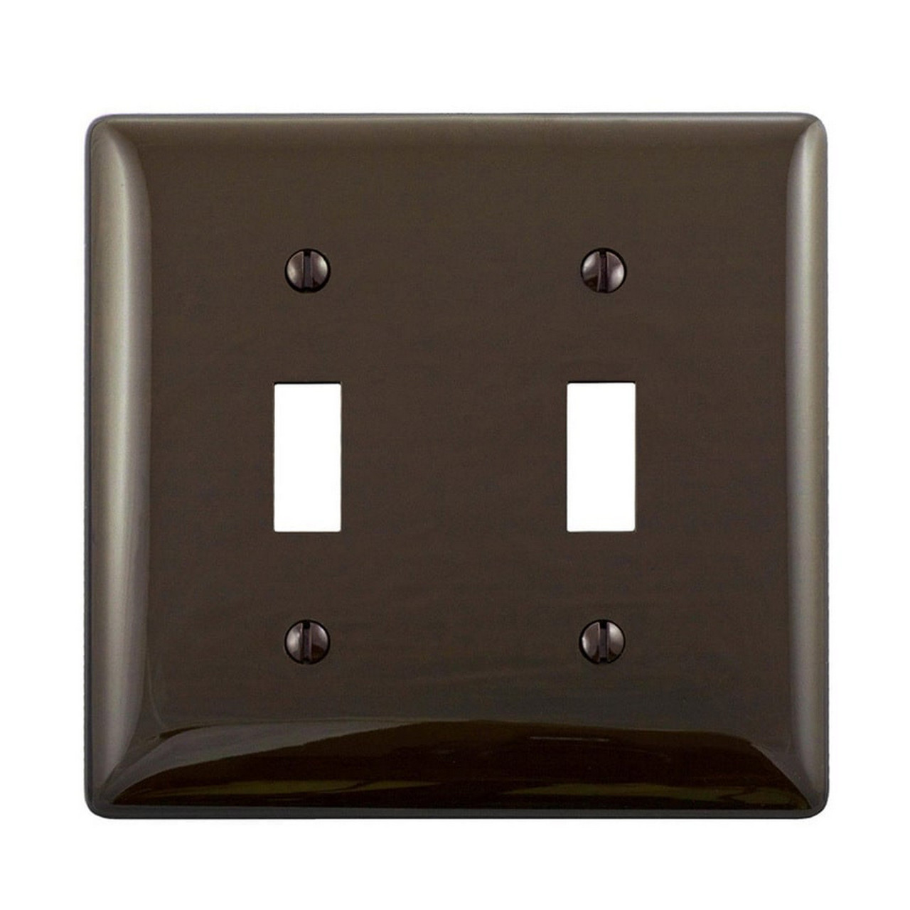 - Hubbell Brown 2-Gang UNBREAKABLE Mid-Size Toggle Switch Plate Cover Wallplate NPJ2Z