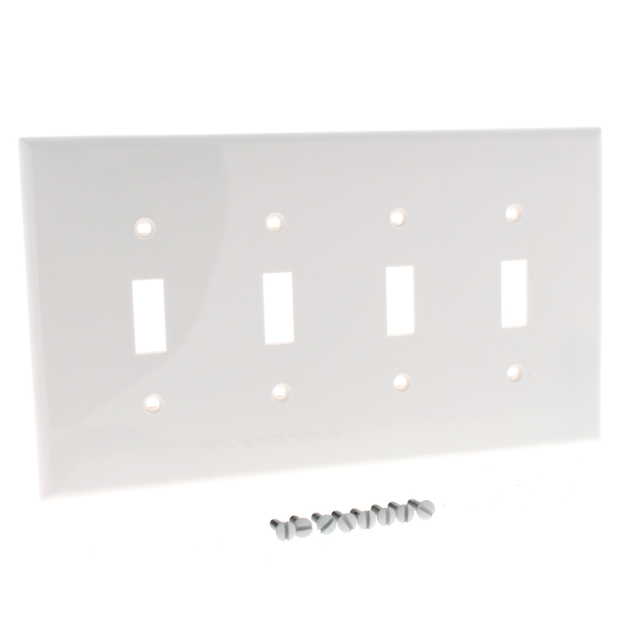 - Leviton White 4-Gang MIDWAY UNBREAKABLE Thermoplastic Toggle Switch Wallplate Cover PJ4-W