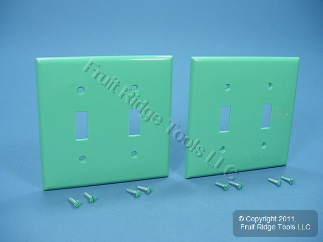 - 2 Leviton GREEN UNBREAKABLE 2-Gang Switch Cover Wallplates Switchplate 80709-GN