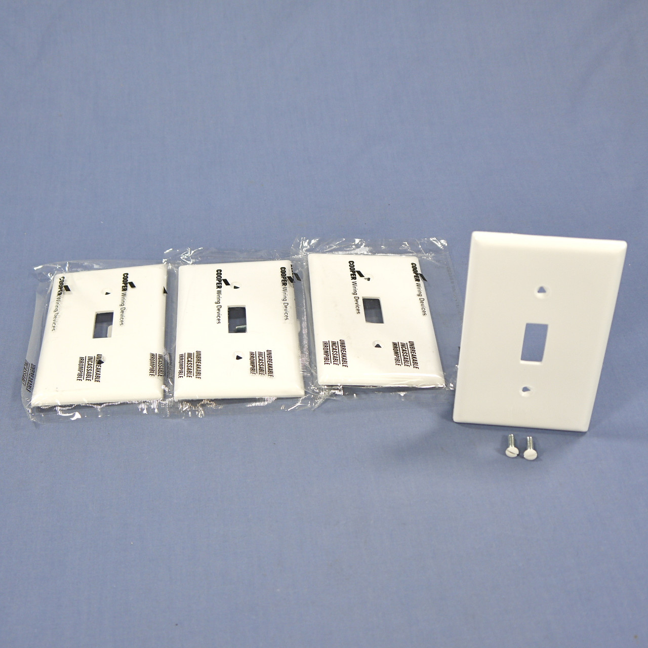 - 4 Cooper White Standard 1-Gang Unbreakable Toggle Switch Cover Wall Plate Switchplates 5134W