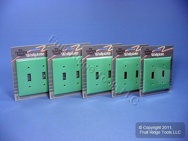 5 Leviton 80709-GN green 2-gang switch wallplates. The retro green color is great for applications where you are trying to match a particular look. Commercial Specification Grade, standard size plate, made of a tough unbreakable thermoplastic material for use in more demanding environments such as commercial locations - do not confuse it with regular Residential wallplates which can chip or crack. Features include: